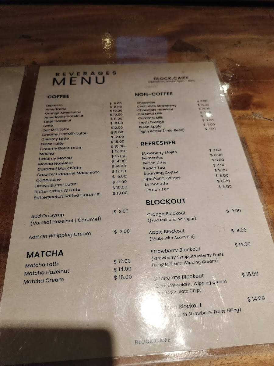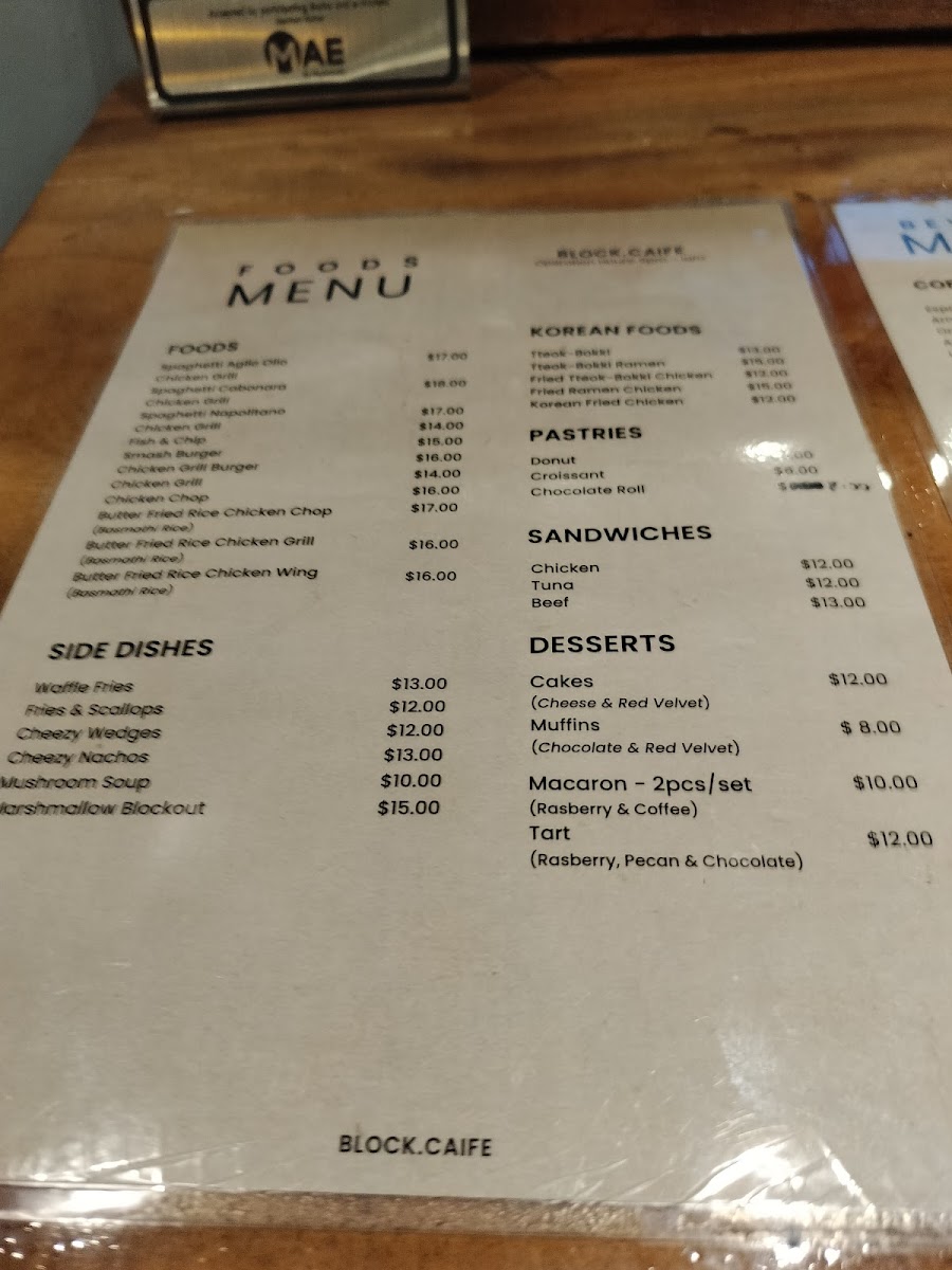 BLOCK Caife Menu